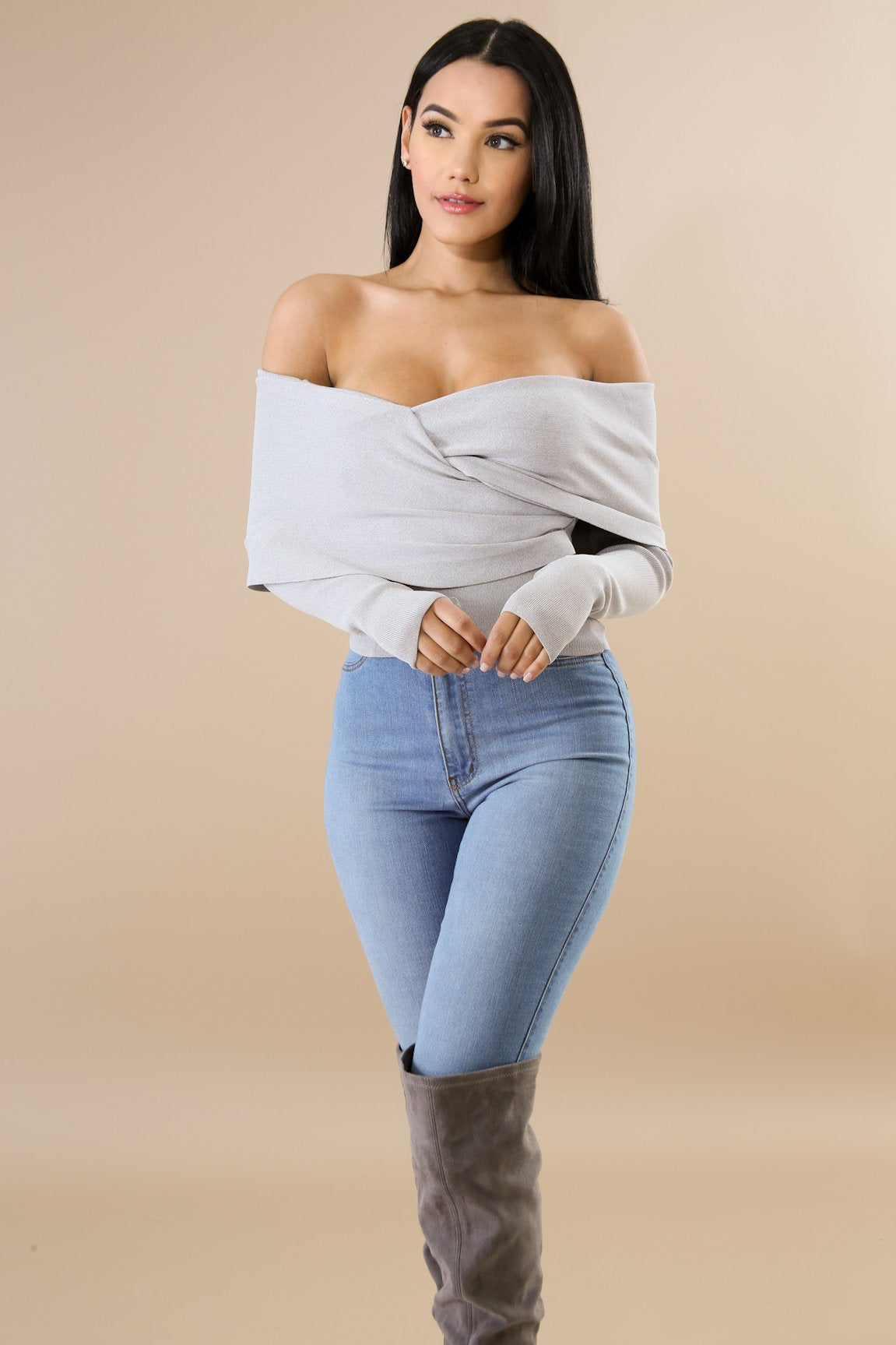 This gorgeous over lap trim top features, a stretchy fabric, v-neckline, no closures.