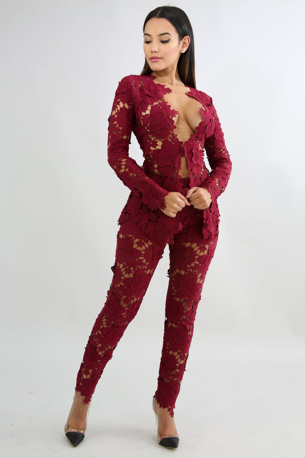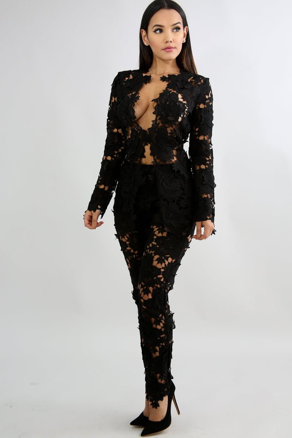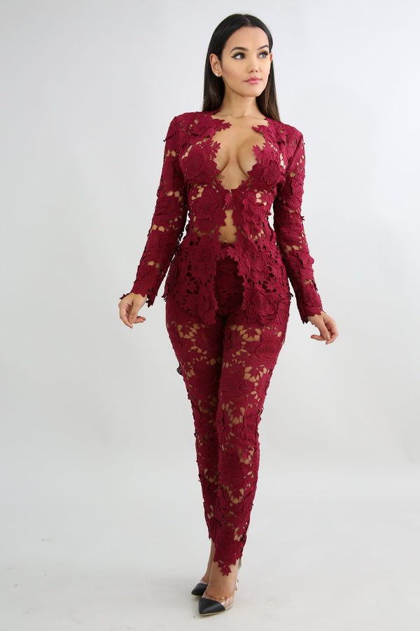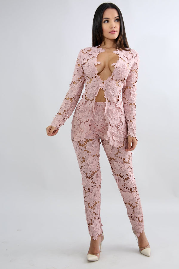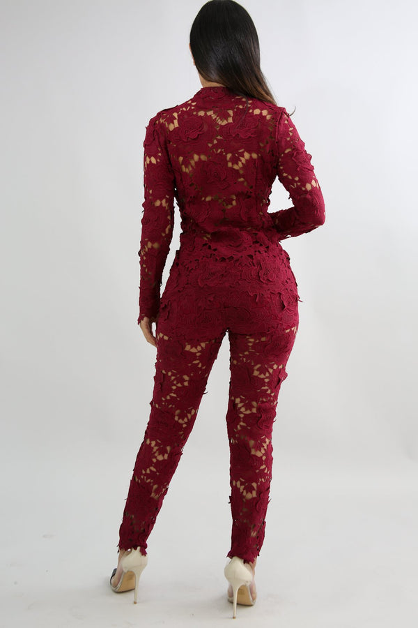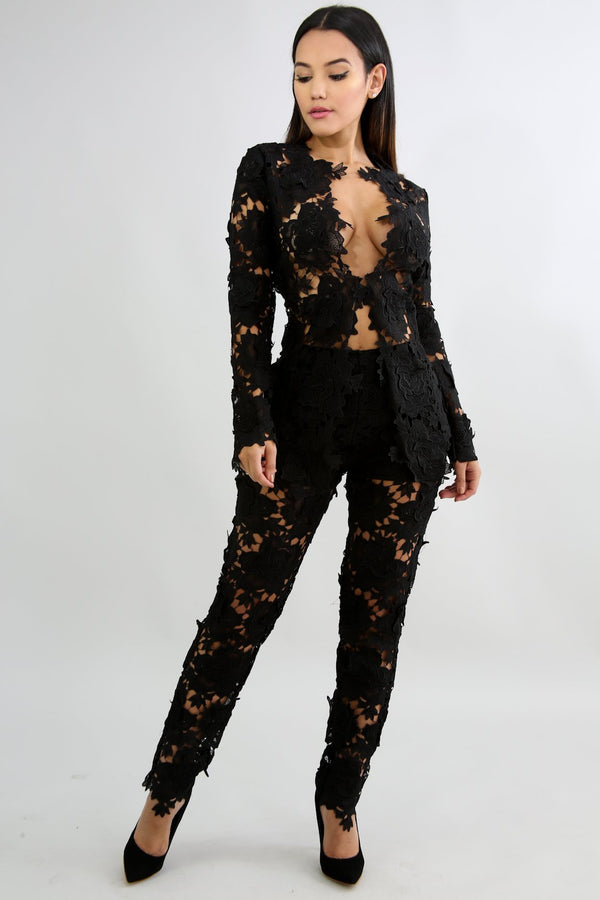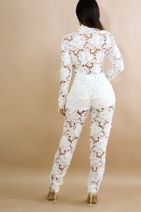 Style 10106 Description This barbie crochet pant suit set features, a non-stretch fabric, long sleeve blazer, clip on front closure, high waist underlined pants, finished with a hidden side zipper closure. Model is wearing a small This Item Is Final...