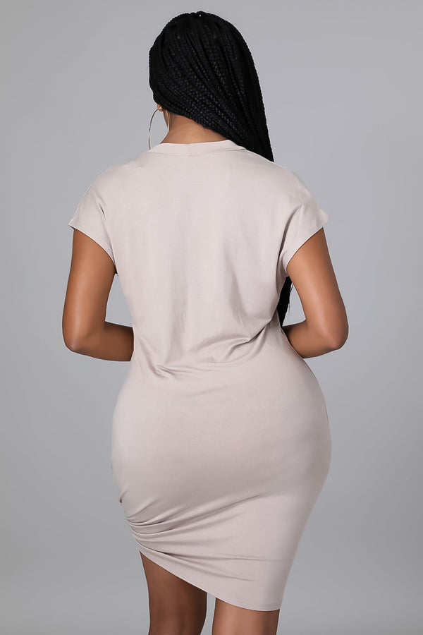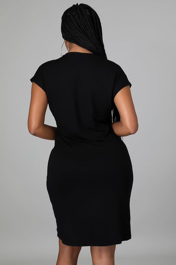 Style 51767 Stretch dress Plunging neckline  Short sleeve  No closure  95% polyester  5% spandex  Hand wash cold  Model is wearing a small  MODEL STATS Height: 5.6"Bust:34" / Waist:25" / Hips:41"
