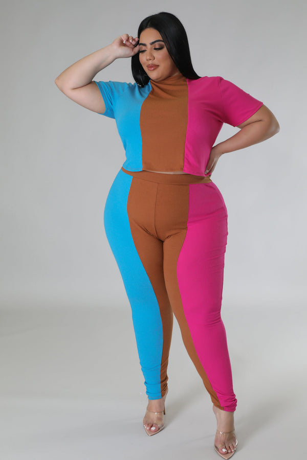 StyleGT41212X Two piece et Crop top Mock neck Short sleeves Ribbed No closure High waisted pants Elastic waistband No closure 64% rayon 33% polyester 3% spandex Hand wash cold Inseam is 31 inches Model is wearing a 2X MODEL STATSHeight:...