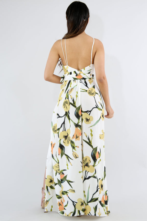 Style LJP4029 Description This tulip maxi jumpsuit features, a non-stretch fabric, n-neckline, stretchy shoulder straps, open slits on front, finished with a hidden back zipper closure. Model is wearing a small This Item Is Final Sale! 100% Polyester Hand wash...