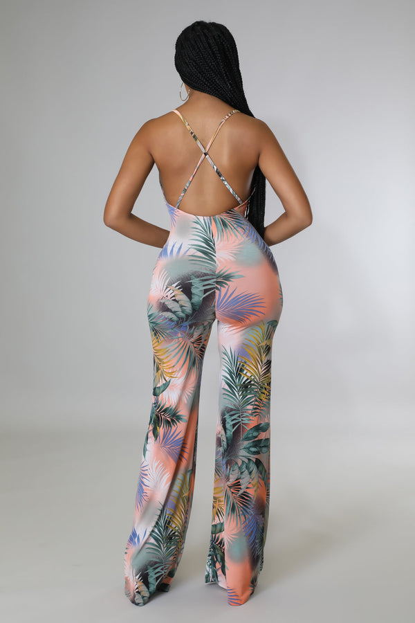 Stretch jumpsuit  U neckline  Sleeveless  X back  Flare bottoms  No closure  96% polyester  4% spandex  Hand was cold  Inseam is 36 inches  Model sis wearing a small  MODEL STATS Height: 5.6"Bust:34" / Waist:25" / Hips:41"