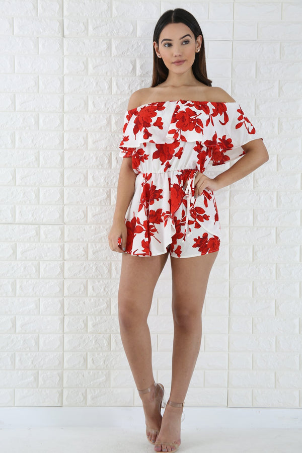 Style RJ90292A Description This sweet floral romper features, a non-stretch fabric, sleeveless, flare top, loose short, elastic waistline, floral print, finished with a front attached tie strap closure. Model is wearing a small This Item Is Final Sale! 100% Polyester...